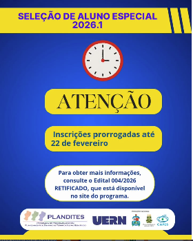PRORROGAÇÃO DAS INSCRIÇÕES PARA ALUNO ESPECIAL – PLANDITES